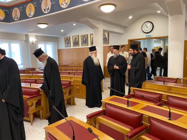 Ευχές για τα Ονομαστήριά του δέχθηκε σήμερα το πρωί ο Μακαριώτατος Αρχιεπίσκοπος Αθηνών και πάσης Ελλάδος κ.κ. Ιερώνυμος στο Συνοδικό Μέγαρο από τους εργαζομένους στις υπηρεσίες της Ιεράς Συνόδου της Εκκλησίας της Ελλάδος.