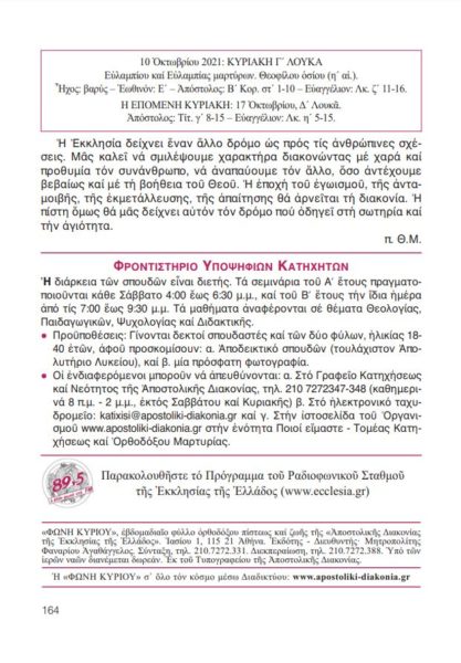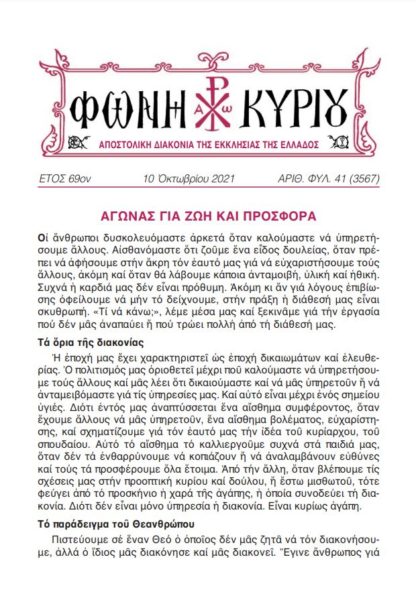 ΔΙΑΒΑΣΤΕ ΔΙΑΔΙΚΤΥΑΚΑ την “Φωνή Κυρίου” της Αποστολικής Διακονίας της Εκκλησίας της Ελλάδος, της Κυριακής Γ’ Λουκά, 10 Οκτωβρίου 2021, όπως αυτή διανεμήθηκε σε όλους τους ιερούς ναούς της ελληνικής επικράτειας, αλλά και του εξωτερικού.