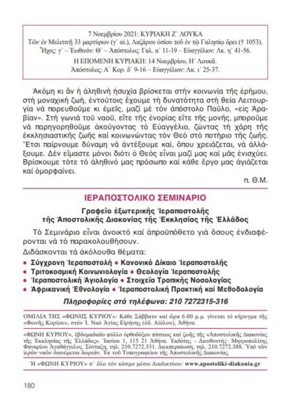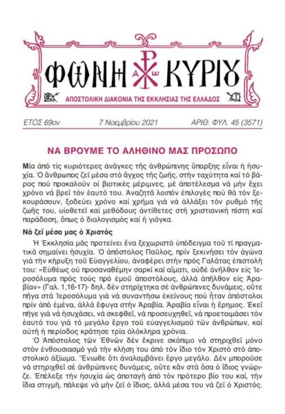 ΔΙΑΒΑΣΤΕ ΔΙΑΔΙΚΤΥΑΚΑ την “Φωνή Κυρίου” της Αποστολικής Διακονίας της Εκκλησίας της Ελλάδος, της Κυριακής Ζ’ Λουκά, 7 Νοεμβρίου 2021, όπως αυτή διανεμήθηκε σε όλους τους ιερούς ναούς της ελληνικής επικράτειας, αλλά και του εξωτερικού.