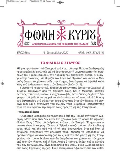 ΦΩΝΗ ΚΥΡΙΟΥ: Το φίδι και ο Σταυρός