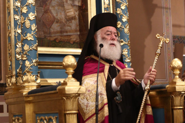 Απευθυνόμενος προς τον Αρχιεπίσκοπο Αθηνών και πάσης Ελλάδος σημείωσε: «Σε τούτον τον αγώνα της σποράς της Ορθοδοξίας στην Αφρική πιστεύουμε ακραδάντως, ότι η ελπίδα και το όραμα, όσο κι αν η πορεία τους δυσκολευθή προσωρινά από ανέχειες ή προσκόμματα ή επιχειρούμενες κακοπροαίρετες ενδορθόδοξες διασπάσεις, πάντοτε βρίσκουν διεξόδους εκφράσεως και υλοποιήσεως μέσα από τον αστείρευτο δίαυλο της ενοποιητικής αγάπης. Αυτήν την ενότητα, την κυριολεκτικώς θαυματουργούσα διά της αμωμήτου πίστεως εν τω συνδέσμω της αγάπης, βιώνουμε στην γεωγραφική δικαιοδοσία του καθ’ ημάς Αποστολικού και Πατριαρχικού Θρόνου του Αγίου Μάρκου με την πολυτίμητη συναρωγή, ένυλη και ηθική, της Αγιωτάτης Εκκλησίας της Ελλάδος και των κατά τόπους Ιερών Μητροπόλεων Αυτής. Αποτελεί δε ευλογία το γεγονός, ότι σήμερα έχουμε την δυνατότητα, όχι μόνον να εκδηλώσουμε αυτοπροσώπως και επισήμως προς το τίμιο Πρόσωπο Σας την ευγνωμοσύνη της των Αλεξανδρέων Εκκλησίας για αυτήν την πολύτιμη συναντίληψη προς το ιεραποστολικό γεώργιο, αλλά και να εκφράσουμε τίς ολόθυμες συγχαρητήριες ευχές μας προς την Μακαριότητά Σας, επί τη συμπληρώσει κατά το τρέχον έτος, δεκαπενταετούς αγλαοκάρπου και ευκλεούς Πρωθιεραρχικής διακονίας. Κατὰ την δεκαπενταετὴ σεμνή, συνετή και αθόρυβη πηδαλιουχία Σας της νοητής καθ’ Ελλάδα ολκάδος του Χριστού, βιώνουμε την αμέριστη και παντοειδή συμπαράστασή Σας στο Αποστολικό έργο της μεταλαμπαδεύσεως της Ορθοδόξου πίστεως, της πίστεως της ελπίδος στους διψώντες τον λόγο του Κυρίου, Αφρικανοὺς αδελφοὺς μας. Κάθε αἴτημα παντοδαπούς ἐνισχύσεως του Πατριαρχείου μας ικανοποιείται από την αγαπώσα καρδία Σας. Και πάλι Σας ευχαριστούμε εγκαρδίως προς τούτο, ως και για την άκρως ευγενή και φιλάδελφη πρόσκλησή Σας να μετάσχουμε τούτου του πνευματικού συμποσίου της πίστεως και της αγάπης.