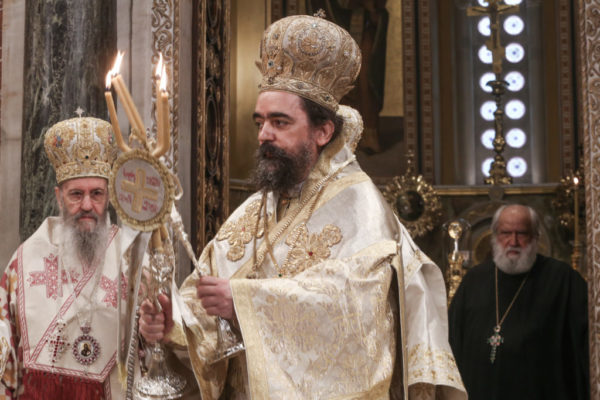 Συμπροσευχόμενοι παρέστησαν πολλοί Αρχιερείς της Εκκλησίας της Ελλάδος. Όπως και στη χθεσινή χειροτονία του Μητροπολίτη Λαγκαδά κ. Πλάτωνος, έτσι και σήμερα η εικόνα στον Μητροπολιτικό Ναό ήταν διαφορετική σε σχέση με χειροτονίες του παρελθόντος λόγω των υγειονομικών μέτρων που ισχύουν για τον περιορισμό της διασποράς του κορωνοϊού.