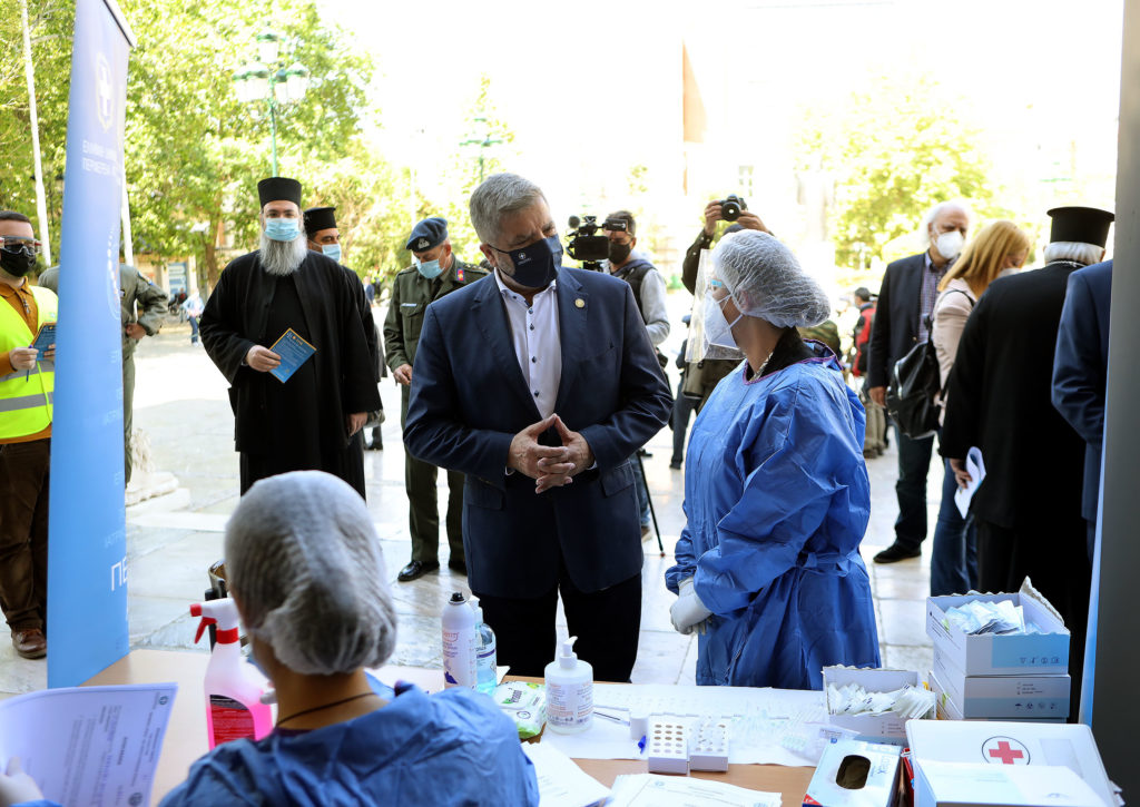 «Βρισκόμαστε στη Μητρόπολη Αθηνών, όπου σήμερα διενεργούνται rapidtestσε ιερείς και το προσωπικό, στο πλαίσιο των ελέγχων που ξεκίνησαν χθες και θα συνεχιστούν τη Μ. Εβδομάδα σε Ιερούς Ναούς της Αρχιεπισκοπής Αθηνών, κατόπιν και σχετικής συνεννόησης με τον Αρχιεπίσκοπο Αθηνών και Πάσης Ελλάδος Ιερώνυμο. Ήδη χθες έγιναν εκατοντάδες rapidtest από τα κλιμάκια μας που βρέθηκαν σε πολλούς Ναούς της Αττικής.