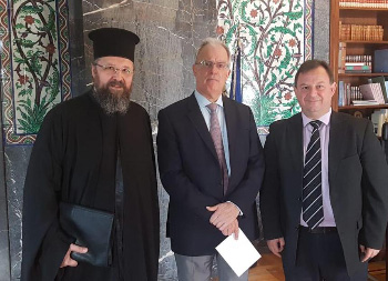 Συνάντηση μιας ώρας και ενημέρωση επί του συνολικού έργου που επιτελείται στον τομέα του Θρησκευτικού Τουρισμού από την Εκκλησία της Ελλάδος πραγματοποίησε χθες, 9 Οκτωβρίου 2019, στις 11.00 π.μ., ο Πανοσιολογιώτατος Αρχιμ. κ. Σπυρίδων Κατραμάδος, Γραμματεύς του Συνοδικού Γραφείου των Προσκυνηματικών Περιηγήσεων, συνοδευόμενος από τον κ. Βασίλειο Γιόγακα, Βουλευτή Θεσπρωτίας, στον συμπατριώτη του εξ Ηπείρου Εξοχώτατο Πρόεδρο της Βουλής των Ελλήνων, κ. Κωνσταντίνο Τασούλα, στο Γραφείο του στη Βουλή.