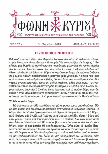 Διαβάστε ΕΔΩ τη “Φωνή Κυρίου” της 14ης Απριλίου 2019 της Αποστολικής Διακονίας της Εκκλησίας της Ελλάδος, όπως αυτή διαμοιράστηκε στις Ενορίες ολόκληρης της ελληνικής επικράτειας.