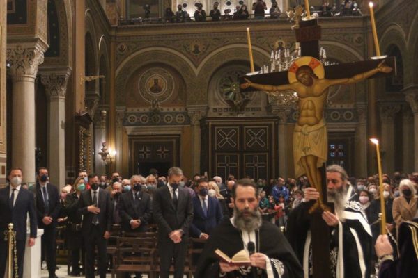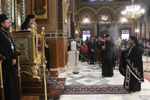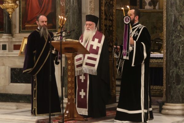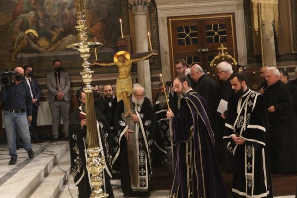 Στον ιερό Μητροπολιτικό Ναό Αθηνών χοροστάτησε στην ακολουθία των Αχράντων Παθών του Κυρίου ο Αρχιεπίσκοπος Αθηνών και πάσης Ελλάδος κ.κ. Ιερώνυμος. Συγχοροστάτησαν οι Επίσκοποι Ωρεών κ. Φιλόθεος, Αρχιγραμματέας της Ιεράς Συνόδου της Εκκλησίας της Ελλάδος και Ρωγών κ. Φιλόθεος, ενώ παρέστη και ο Πρόεδρος της Ελληνικής Κυβέρνησης κ. Κυριάκος Μητσοτάκης.