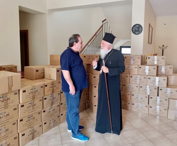 Ο Γενικός Διευθυντής του Φιλανθρωπικού Οργανισμού «ΑΠΟΣΤΟΛΗ» Κωνσταντίνος Δήμτσας με τον Σεβασμιώτατο Μητροπολίτη Λήμνου κ. Ιερόθεο παράδωσαν σε 150 οικογένειες είδη πρώτης ανάγκης, ως μήνυμα αγάπης του Μακαριωτάτου Αρχιεπισκόπου Αθηνών και πάσης Ελλάδος κ.κ. Ιερωνύμου.
