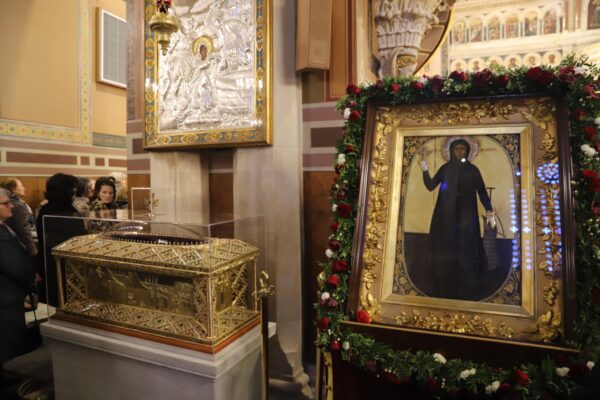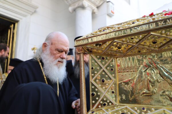 Το ιερό σκήνωμα διήλθε από το σπίτι της Αγίας και την Αρχιεπισκοπή Αθηνών, όπου έγινε δέηση παρόντος του Αρχιεπισκόπου Αθηνών και Πάσης Ελλάδος κ.κ. Ιερωνύμου.