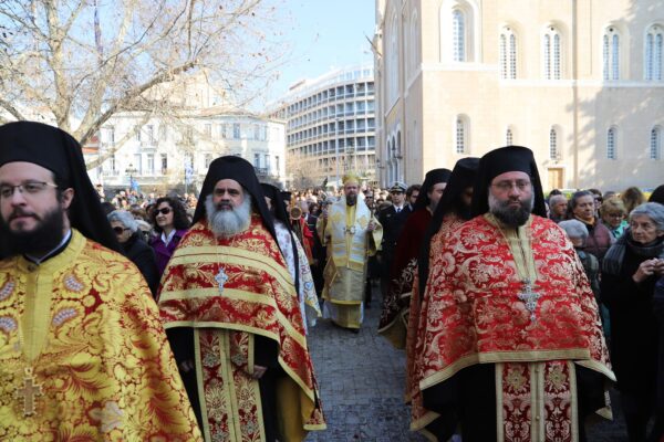 Προεξάρχοντος του Θεοφιλεστάτου Επισκόπου Ωρεών κ. Φιλοθέου και τη συμμετοχή κληρικών της Ιεράς Αρχιεπισκοπής, τελέστηκε σήμερα, στον Καθεδρικό Ναό Αθηνών, η πανηγυρική Θεία Λειτουργία επί τη μνήμη της οσίας Φιλοθέης της Αθηναίας, το τίμιο σκήνωμα της οποίας φυλάσσεται στο ναό.