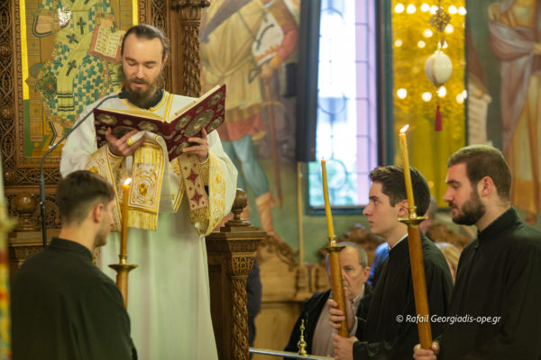 Τον Θείο Λόγο κήρυξε ο Γέροντας Εφραίμ Βατοπαιδινός ο οποίος αναφέρθηκε στα χαρίσματα του Αγίου Ιωάννου του Χρυσοστόμου, στο μεγάλο του συγγραφικό έργο καθώς και στη συγγραφή των ευχών της Θείας Λειτουργίας από τον Ιερό Χρυσόστομο οι οποίες αποτέλεσαν καρπό της δικής του πνευματικής αισθήσεως. Ο Καθηγούμενος της Ιεράς Μεγίστης Μονής Βατοπαιδίου, μίλησε ακόμη για τα άγια λείψανα των Αγίων μας και τη μεγάλη ευλογία να βρίσκεται στην Αθήνα η Τιμία Κάρα του Αγίου Ιωάννου του Χρυσοστόμου, η προσκύνηση της οποίας δίνει ελπίδα στο λαό του Θεού.