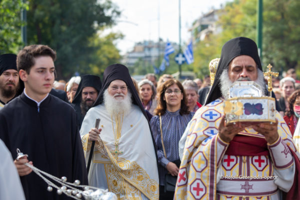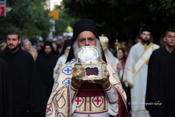 Οι ιερές ακολουθίες και η λιτανεία μεταδόθηκαν ζωντανά από την Pemptousia TV. (Τεχνική Κάλυψη – Εικονοληψία: Ανδρέας Χαλκιόπουλος, Αντώνης Βαραμπούτης).