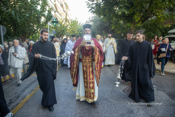 Μετά το πέρας της Θείας Λειτουργίας ακολούθησε λιτάνευση της Τιμίας Κάρας και της ιεράς Εικόνας του Αγίου σε παρακείμενες οδούς πλησίον του ναού, με τη συνοδεία της μπάντας του Δήμου Αθηναίων και τη συμμετοχή πλήθος κόσμου.