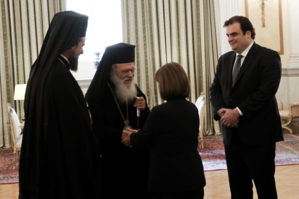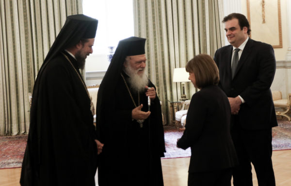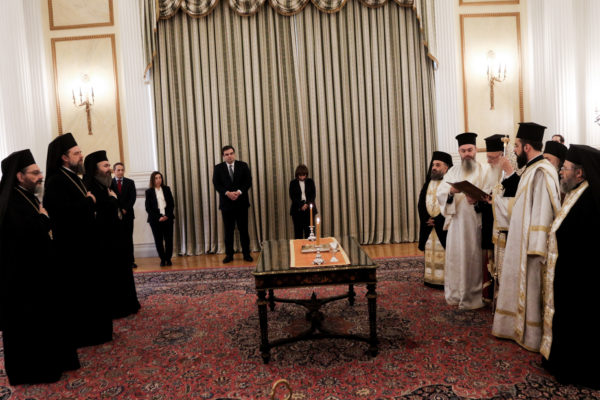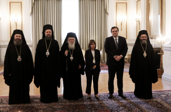 Τη νενομισμένη διαβεβαίωση ενώπιον της Προέδρου της Δημοκρατίας, Κατερίνας Σακελλαροπούλου, παρουσία του Μακαριωτάτου Αρχιεπισκόπου Αθηνών και πάσης Ελλάδος κ.κ. Ιερωνύμου και του Υπουργού Παιδείας, Αθλητισμού και Θρησκευμάτων, Κυριάκου Πιερρακάκη, έδωσαν σήμερα το μεσημέρι στο Προεδρικό Μέγαρο οι Μητροπολίτες Θεσσαλονίκης κ. Φιλόθεος, Παραμυθίας κ. Σερεπίων και Φλωρίνης κ. Ειρηναίος.