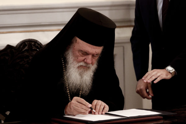 «Διαβεβαιούμαι επί τη Αρχιεροσύνη μου ότι θα εκπληρώ τη θεία χάριτι τα αρχιερατικά μου καθήκοντα μετά πάσης σπουδής και δυνάμεως, τηρών απαρασαλεύτως τους ιερούς αποστολικούς και συνοδικούς Κανόνας και τας ιεράς Παραδόσεις, διαδηλώ δε υπακοήν εις το Σύνταγμα και τους νόμους του Κράτους».