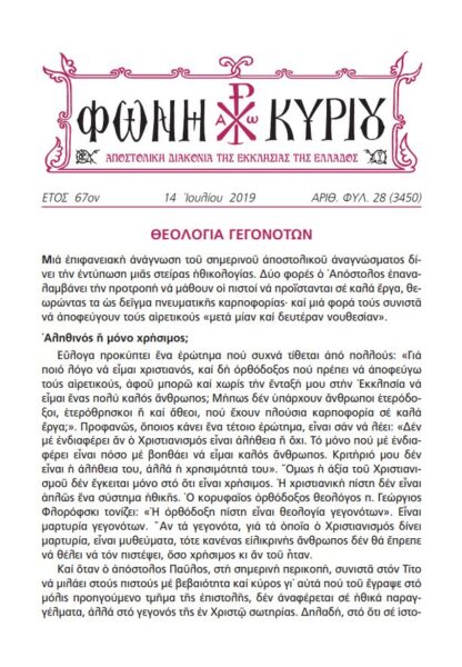 Διαβάστε ΕΔΩ τη “Φωνή Κυρίου” της Αποστολικής Διακονίας της Εκκλησίας της Ελλάδος της 14ης Ιουλίου 2019, όπως αυτή διαμοιράστηκε στους ιερούς ναούς ολόκληρης της ελληνικής επικράτειας.
