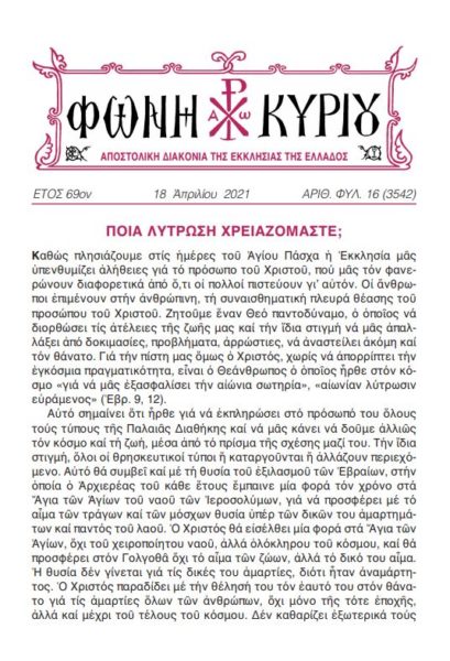 Η “Φωνή Κυρίου” της 18ης Απριλίου