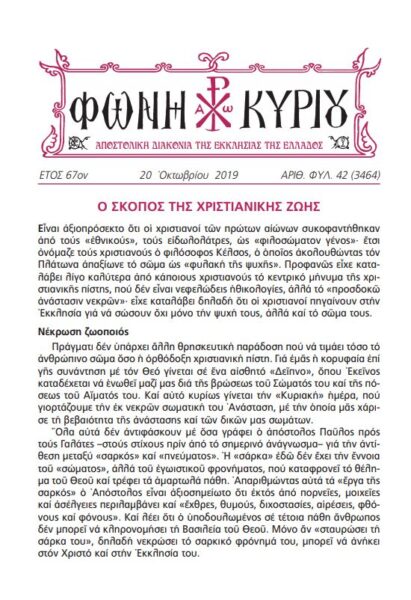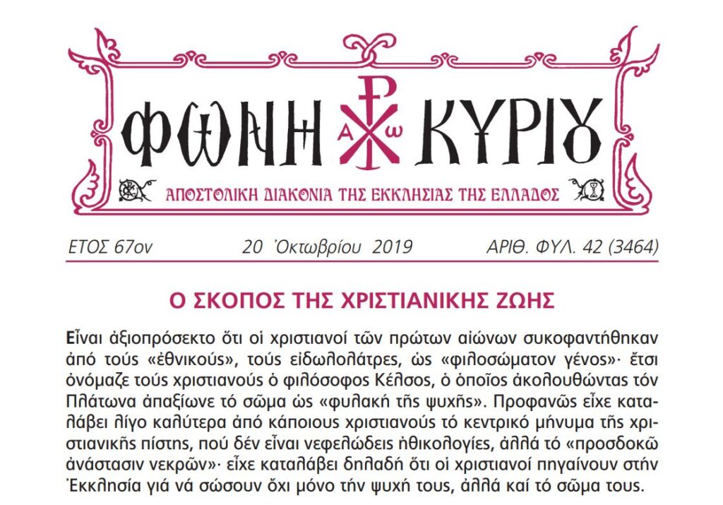 ΔΙΑΒΑΣΤΕ ΕΔΩ τη Φωνή Κυρίου της Αποστολικής Διακονίας της Εκκλησίας της Ελλάδος της 20ης Οκτωβρίου 2019, όπωα αυτή διεμοιράσθη σε όλους τους ιερούς ναούς της Ελληνικής επικράτειας.