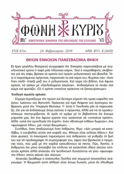 Διαβάστε ΕΔΩ τη “ΦΩΝΗ ΚΥΡΙΟΥ” της 24ης Φεβρουαρίου 2019 της Αποστολικής Διακονίας της Εκκλησίας της Ελλάδος, όπως αυτή διαμοιράστηκε στους ιερούς ναούς ολόκληρης της χώρας.