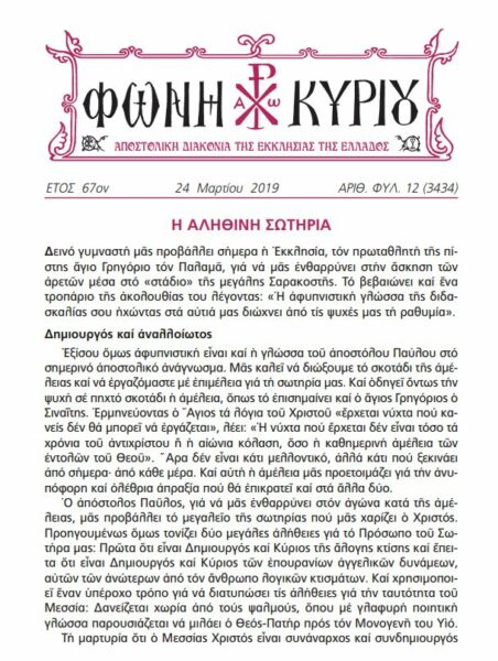 Διαβάστε ΕΔΩ τη Φωνή Κυρίου της Αποστολικής Διακονίας της Εκκλησίας της Ελλάδος της 24ης Μαρτίου 2019, όπως αυτή διαμοιράστηκε στους ιερούς ναούς ολόκληρης της Ελλάδος.