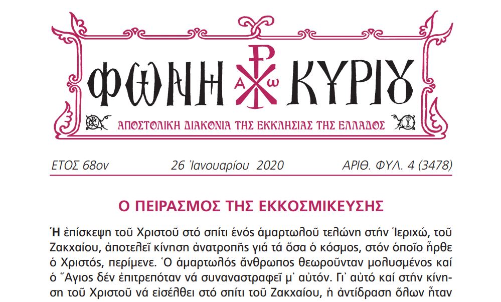 ΔΙΑΒΑΣΤΕ ΕΔΩ τη “Φωνή Κυρίου” της Αποστολικής Διακονίας της Εκκλησίας της Ελλάδος της 26ης Ιανουαρίου 2020, όπως αυτή διεμοιράσθη σε όλους τους ιερούς ναούς της ελληνικής επικράτειας, αλλά και του εξωτερικού.