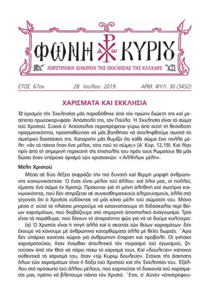 ΔΙΑΒΑΣΤΕ ΕΔΩ τη “Φωνή Κυρίου” της Αποστολικής Διακονίας της Εκκλησίας της Ελλάδος της 28ης Ιουλίου 2019, όπως αυτή διεμοιράσθη στους ιερούς ναούς ολόκληρης της ελληνικής επικράτειας.