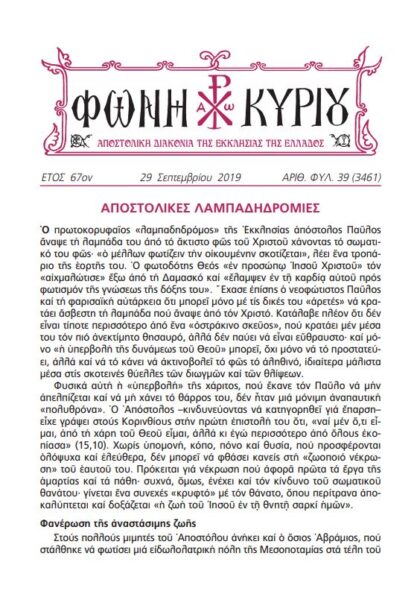 ΔΙΑΒΑΣΤΕ ΕΔΩ τη “Φωνή Κυρίου” της Αποστολικής Διακονίας της Εκκλησίας της Ελλάδος της 29ης Σεπτεμβρίου 2019, όπως αυτή διεμοιράσθη σε όλους τους ναούς της ελληνικής επικράτειας.