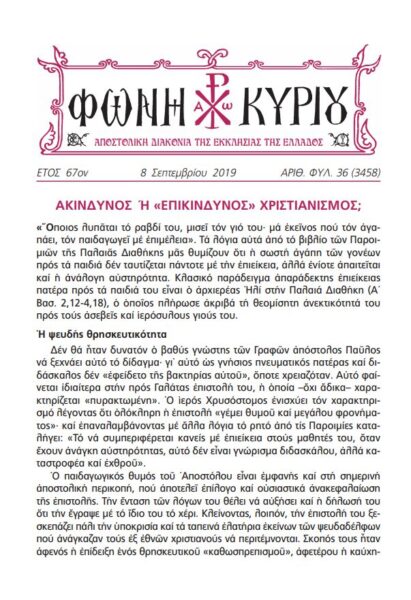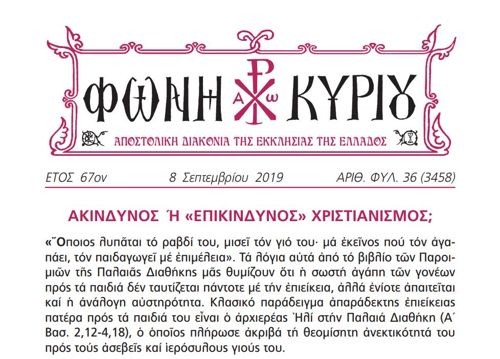 ΔΙΑΒΑΣΤΕ ΕΔΩ την “ΦΩΝΗ ΚΥΡΙΟΥ” της Αποστολικής Διακονίας της Εκκλησίας της Ελλάδος, όπως αυτή διεμοιράσθη σε όλους τους ιερούς ναούς της ελληνικής επικράτειας, κατά την Κυριακή 8 Σεπτεμβρίου 2019.