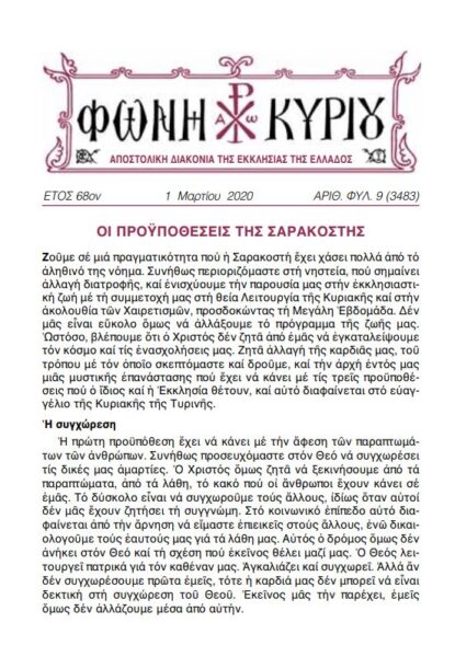 ΔΙΑΒΑΣΤΕ ΔΙΑΔΙΚΤΥΑΚΑ τη Φωνή Κυρίου της Αποστολικής Διακονίας της Εκκλησίας της Ελλάδος (Κυριακή της Τυρινής 2020) όπως αυτή διενεμήθη σε όλες τις ενορίες τις ελληνικής επικράτειας, αλλά και του εξωτερικού.