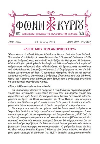 Διαβάστε ΕΔΩ τη “Φωνή Κυρίου” της Αποστολικής Διακονίας της Εκκλησίας της Ελλάδος, όπως αυτή διαμοιράστηκε, κατά την Κυριακή 23 Ιουνίου 2019 – ΤΩΝ ΑΓΙΩΝ ΠΑΝΤΩΝ – στους ιερούς ναούς ολόκληρης της ελληνικής επικράτειας.
