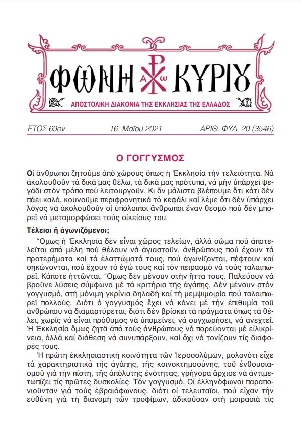 ΔΙΑΒΑΣΤΕ τη Φωνή Κυρίου της Αποστολικής Διακονίας της Εκκλησίας της Ελλάδος – ΚΥΡΙΑΚΗ ΤΩΝ ΜΥΡΟΦΟΡΩΝ – όπως αυτή διεμοιράσθη σε όλους τους ιερούς ναούς της ελληνικής επικράτειας, αλλά και του εξωτερικού, κατά την 16η Μαϊου 2021.