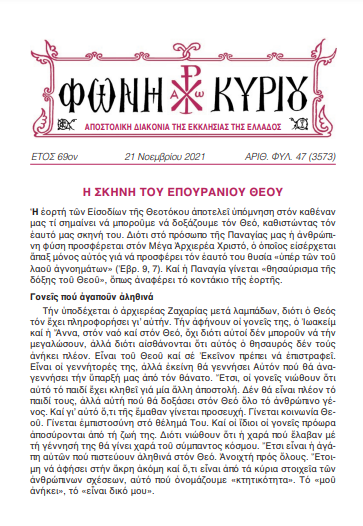 Η Φωνή Κυρίου των Εισοδίων της Κυρίας Θεοτόκου