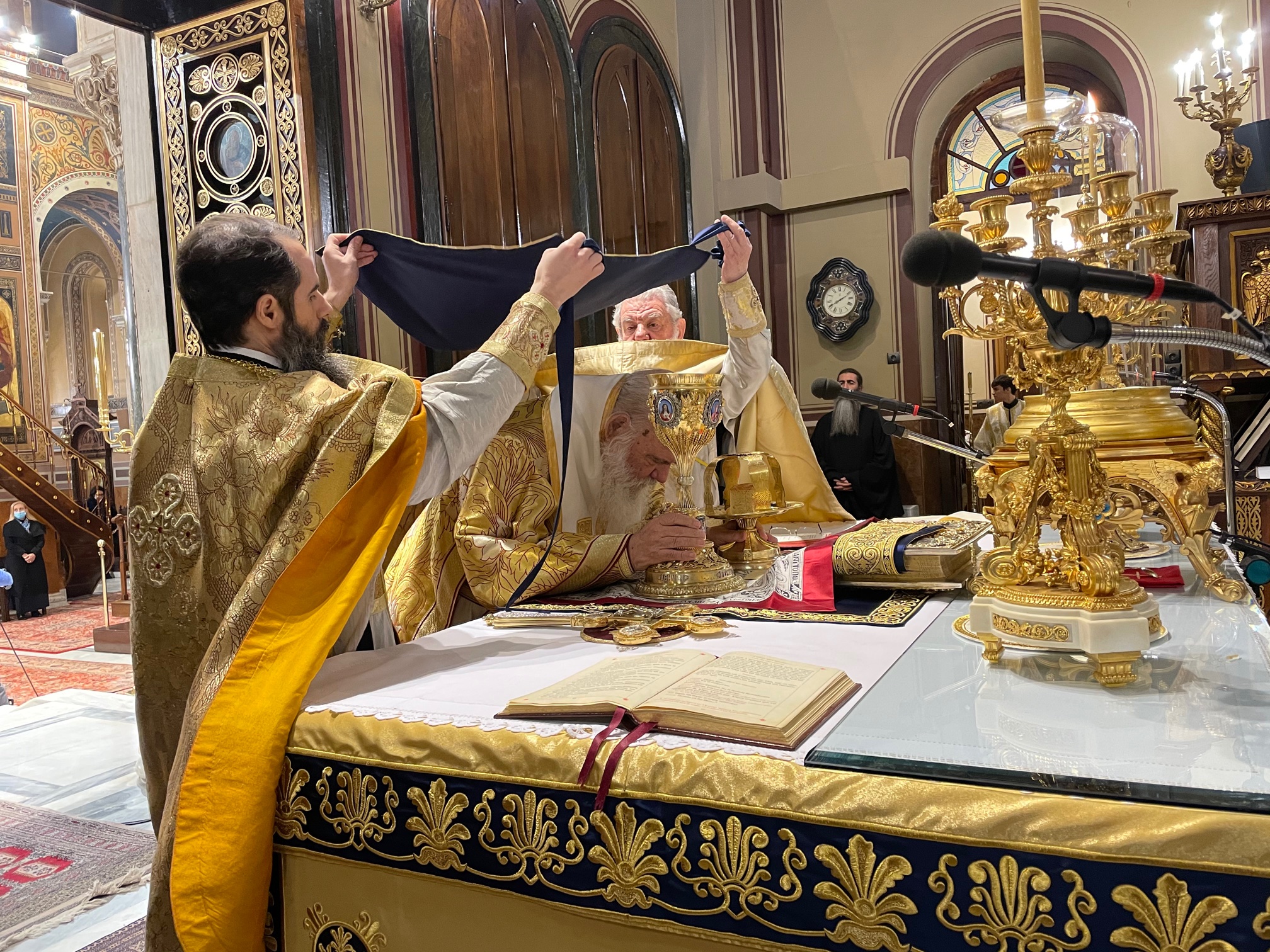 Το πρωί ο Αρχιεπίσκοπος τέλεσε το μυστήριο της Θείας Ευχαριστίας στον Ιερό Μητροπολιτικό ναό Αθηνών τηρουμένων όλων των απαραίτητων μέτρων προστασίας κατα του νέου κορονοϊού.