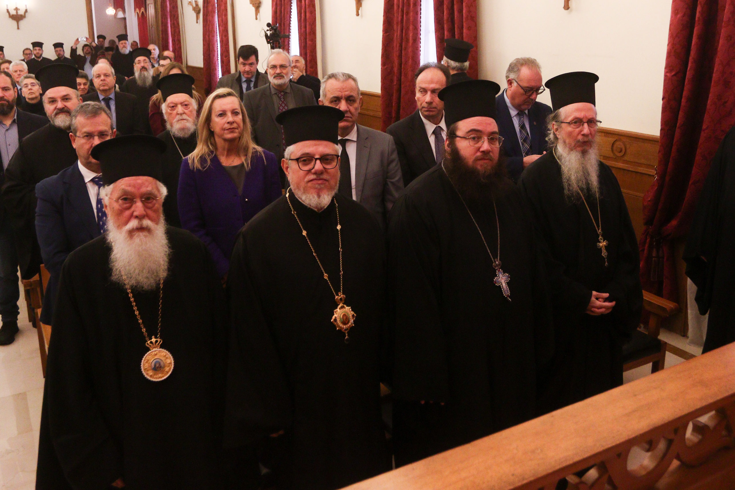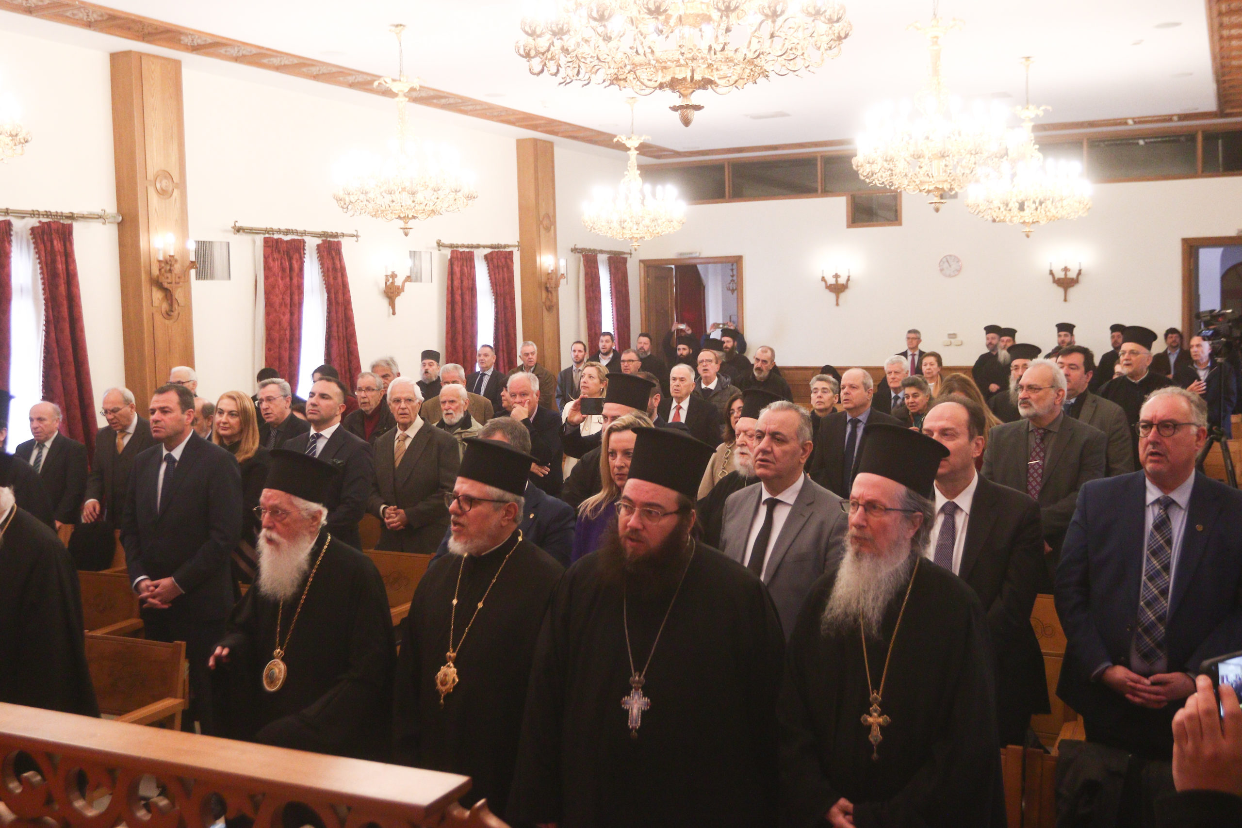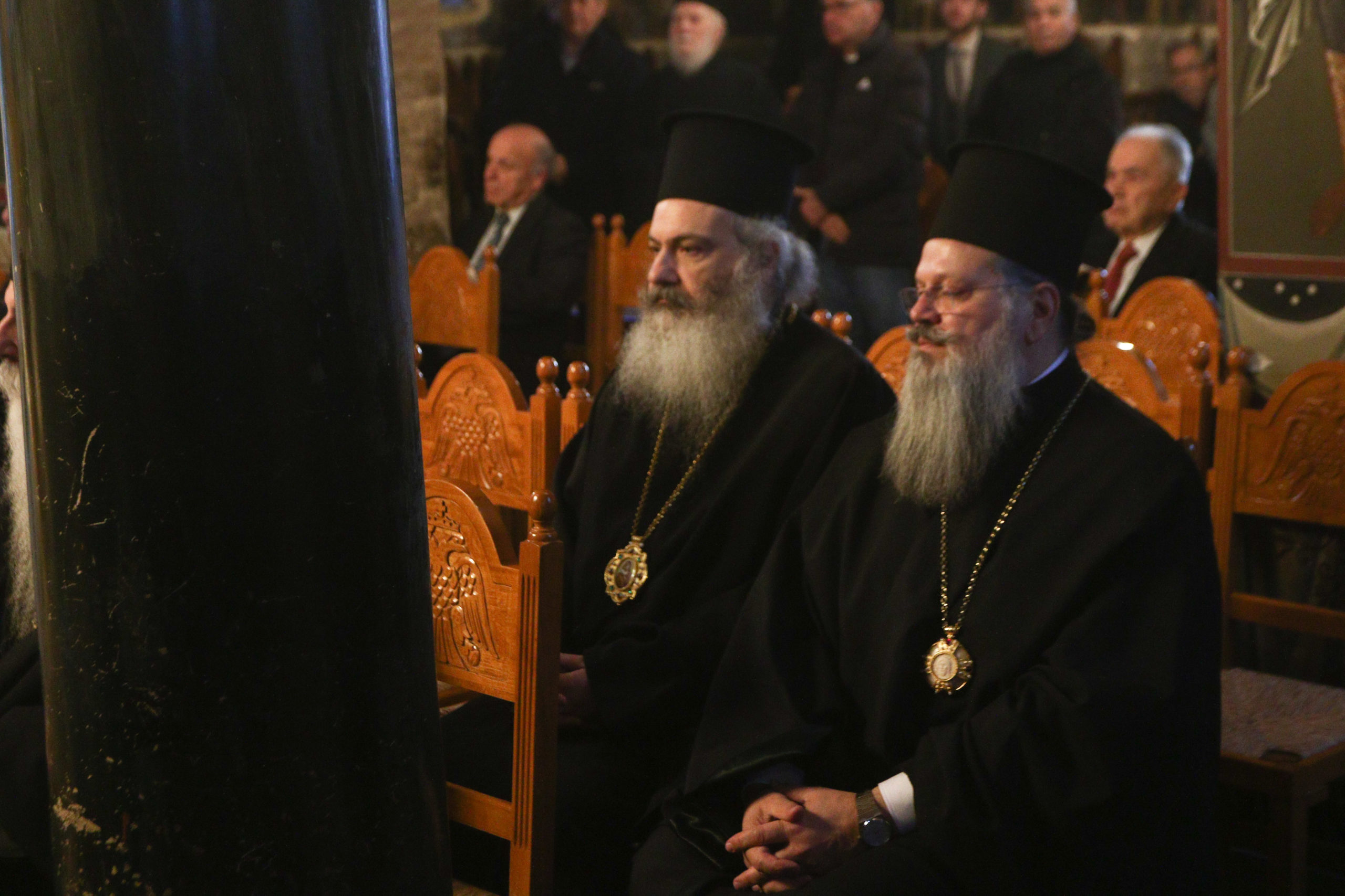 Συμπροσευχόμενοι παρέστησαν Αρχιερείς, ο Διευθυντής του Γραφείου Εκπροσωπήσεως του Οικουμενικού Πατριαρχείου στην Αθήνα, Σεβ. Μητροπολίτης Λαοδικείας κ. Θεοδώρητος, ο Εκπρόσωπος του Πατριάρχη Αλεξανδρείας στην Αθήνα, Σεβ. Μητροπολίτης Γουινέας κ. Γεώργιος, ο Έξαρχος του Παναγίου Τάφου, Αρχιμανδρίτης Ιερώνυμος.