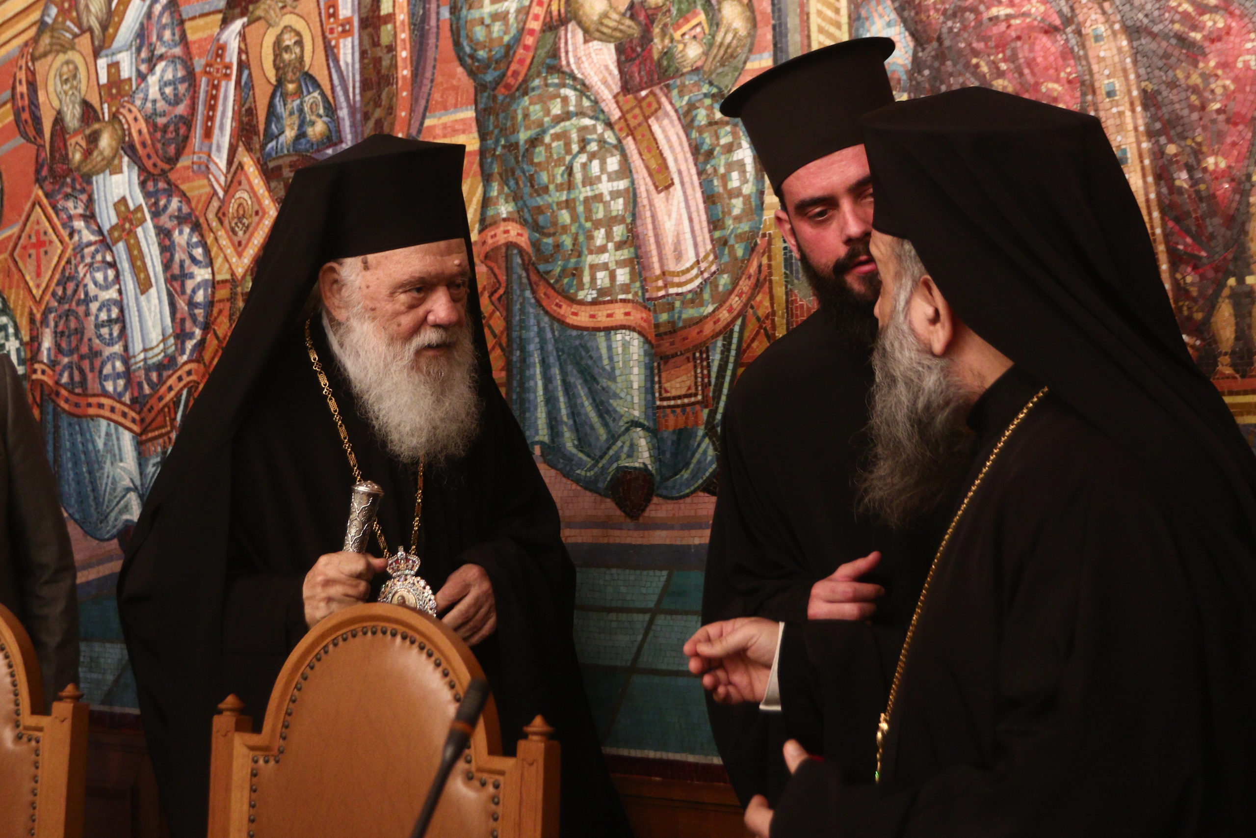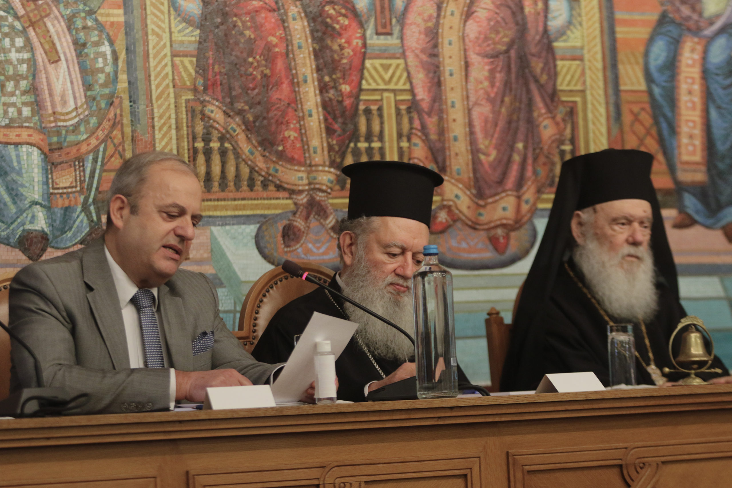 Κατόπιν, στη Μεγάλη Αίθουσα Διαλέξεων του Διορθοδόξου Κέντρου της Εκκλησίας της Ελλάδος, διεξήχθη η καθιερωμένη κοινή σύσκεψη της Ιεράς Συνόδου με τους Καθηγητές των Θεολογικών Σχολών Αθηνών και Θεσσαλονίκης και της Ανωτάτης Εκκλησιαστικής Ακαδημίας Αθηνών.