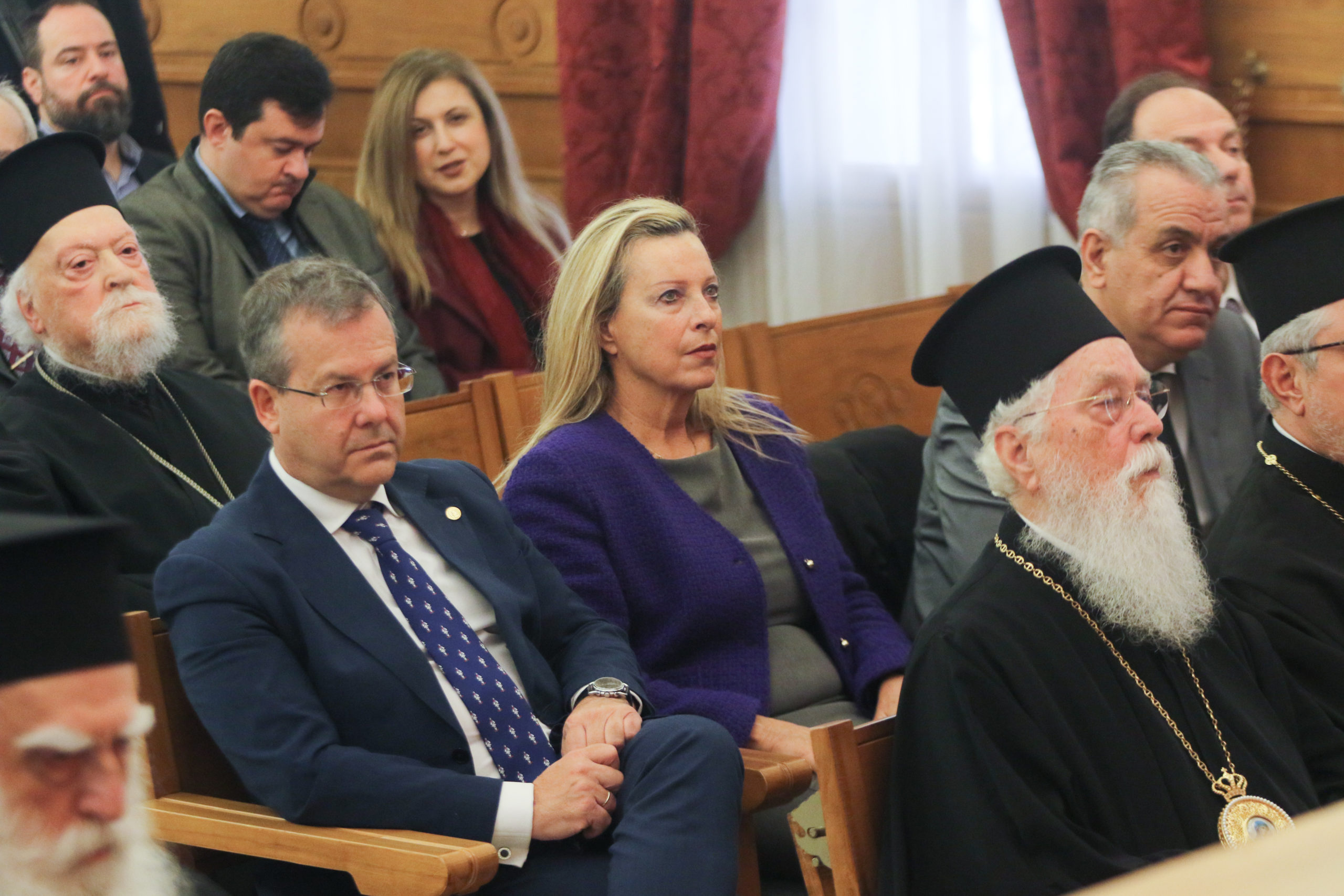 Παρέστησαν επίσης, ο Καθηγητής κ. Χρήστος Καραγιάννης, Αντιπρύτανης Διοικητικών Υποθέσεων, Φοιτητικής Μέριμνας και Διά Βίου Μάθησης του ΕΚΠΑ, ο Καθηγητής κ. Νικόλαος Μαγγιώρος, Αντιπρύτανης Ακαδημαϊκών Υποθέσεων και Ανάπτυξης Α.Π.Θ., οι Κοσμήτορες των Θεολογικών Σχολών Αθήνας και Θεσσαλονίκης, Καθηγητής κ. Εμμανουήλ Καραγεωργούδης και Καθηγητής, Πρωτοπρεσβ. Αθανάσιος Γκίκας, οι Πρόεδροι των Τμημάτων Θεολογίας ΕΚΠΑ και Α.Π.Θ., Καθηγητές κ. Ιωάννης Παναγιωτόπουλος και Ηλίας Ευαγγέλου, η Πρόεδρος του Τμήματος Κοινωνικής Θεολογίας και Θρησκειολογίας ΕΚΠΑ, Καθηγήτρια κ. Κίρκη Κεφαλέα, ο Πρόεδρος του Τμήματος Κοινωνικής Θεολογίας και Χριστιανικού Πολιτισμού, Καθηγητής κ. Απόστολος Κραλίδης και ο Πρόεδρος της Ανώτατης Εκκλησιαστικής Ακαδημίας Αθηνών, Καθηγητής Αθανάσιος Καψάλης.