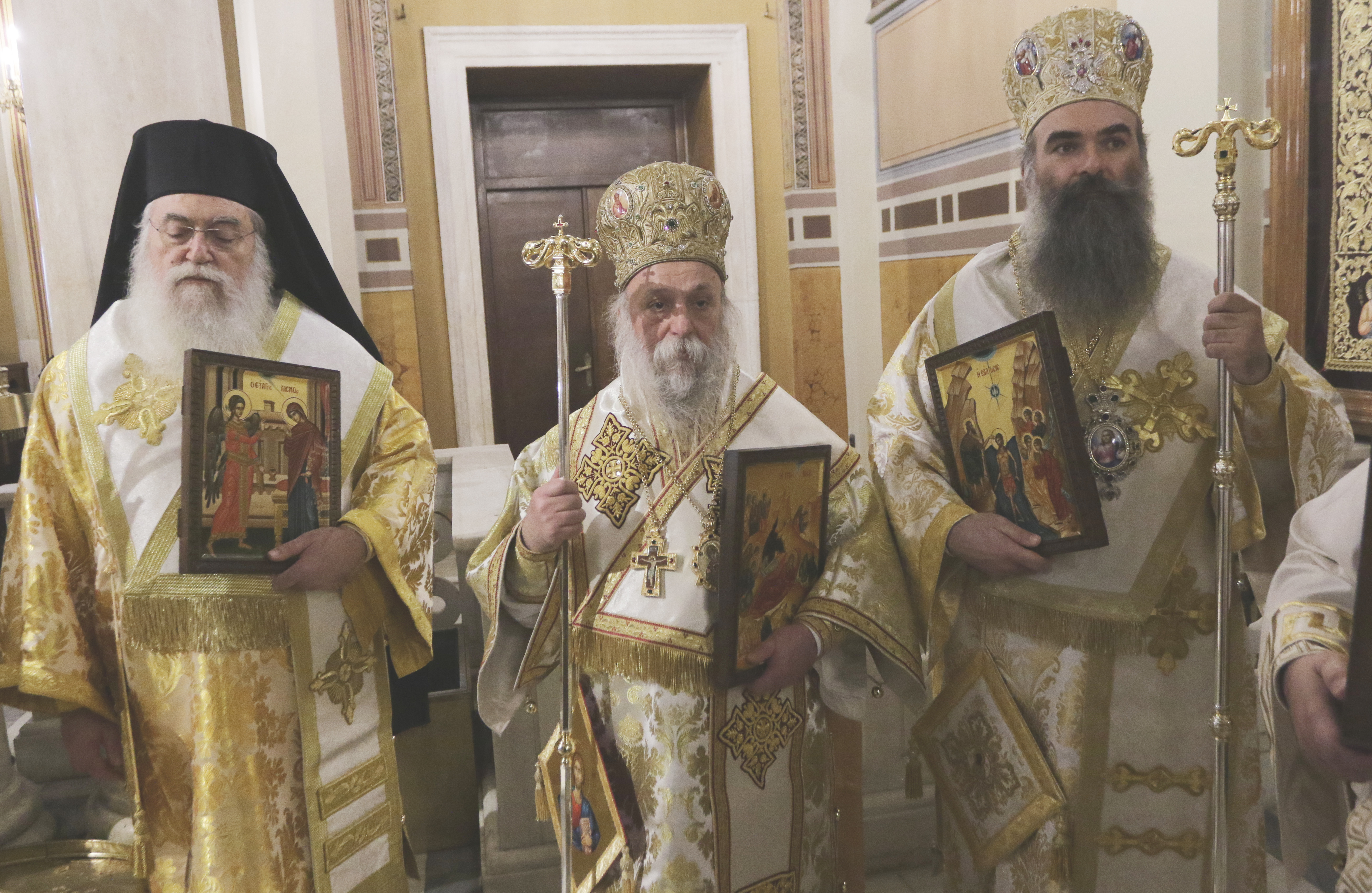 Τελέστηκε στον Καθεδρικό Ιερό Ναό του Ευαγγελισμού της Θεοτόκου Αθηνών η Συνοδική Θεία Λειτουργία επί τη εορτή της ανάμνησης αναστηλώσεως των ιερών εικόνων το 843. Της Συνοδικής Θείας Λειτουργίας συμμετείχε ο Μακαριώτατος Αρχιεπίσκοπος Αθηνών και πάσης Ελλάδος κ.κ. Ιερώνυμος με τη συμμετοχή των Σεβασμιωτάτων Μητροπολιτών Πατρών κ. Χρυσοστόμου, Κυθήρων κ. Σεραφείμ, Αιτωλίας και Ακαρνανίας κ. Κοσμά, Γόρτυνος και Μεγαλουπόλεως κ. Ιερεμία, Κορίνθου κ. Διονυσίου, Ιερισσού κ. Θεοκλήτου, Μαρωνείας κ. Παντελεήμονος, Κίτρους κ. Γεωργίου, Ιωαννίνων κ. Μαξίμου, Ελασσώνος κ. Χαρίτωνος, Γρεβενών κ. Δαυίδ και του Θεοφιλ. Επισκόπου Μεθώνης Κλήμεντος, Αρχιγραμματέα της Ιεράς Συνόδου.
