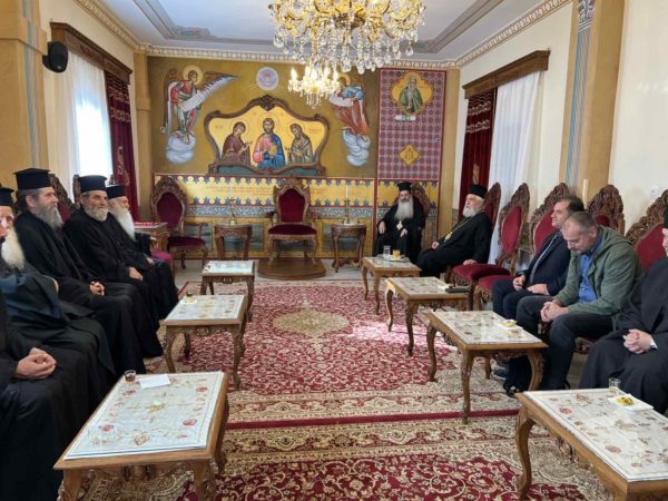 Ο Σεβασμιώτατος Μητροπολίτης Φωκίδος κ. Θεόκτιστος υποδέχθηκε τον Σεβασμιώτατο Μητροπολίτη Φθιώτιδος κ. Συμεών και την συνοδεία του πλαισιούμενος από τον Άγιο Πρωτοσύγκελλο του, Αρχιμανδρίτη π. Νεκτάριο Μουλατσιώτη, τον Γενικό Αρχιερατικό του, Πρωτ. π. Νικόλαο Καραγιάννη και τον Υπεύθυνο Γραμματείας – Λογιστηρίου, Πρωτ. π. Ηλία Ζαφείρη.