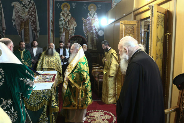 Τον Θείο Λόγο κήρυξε ο Μητροπολίτης Λαγκαδά, ενώ λίγο πριν το πέρας της Θείας Λειτουργίας ο Μητροπολίτης Περιστερίου τίμησε τον Αρχιεπίσκοπο με την ανώτατη τιμητική διάκριση της τοπικής Εκκλησίας, τον Μεγαλόσταυρο του Αγίου Αντωνίου, σε ένδειξη απεριόριστης ευγνωμοσύνης για το εκκλησιαστικό, ποιμαντικό, θεολογικό και ευρύτερο πνευματικό του έργο. Ευχαρίστησε τον Αρχιεπίσκοπο για την παρουσία του, η οποία «λαμβάνει χώρα σε συνθήκες εξαιρετικά δύσκολες για την παγκόσμια Κοινότητα, εξαιτίας, μεταξύ άλλων, και των δύο θανατηφόρων πολέμων που λαμβάνουν χώρα στην ευρύτερη γειτονιά μας».