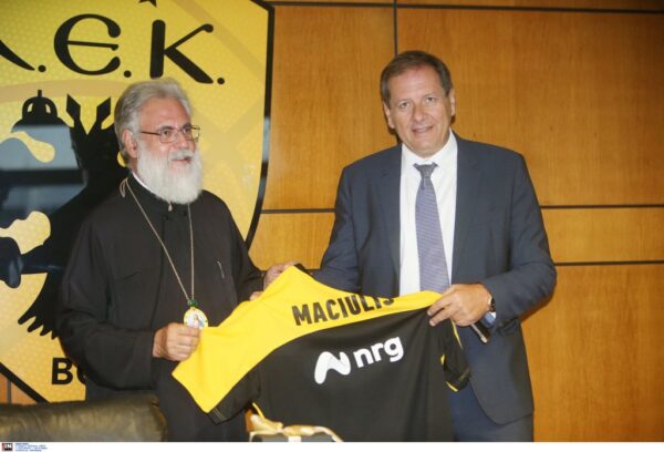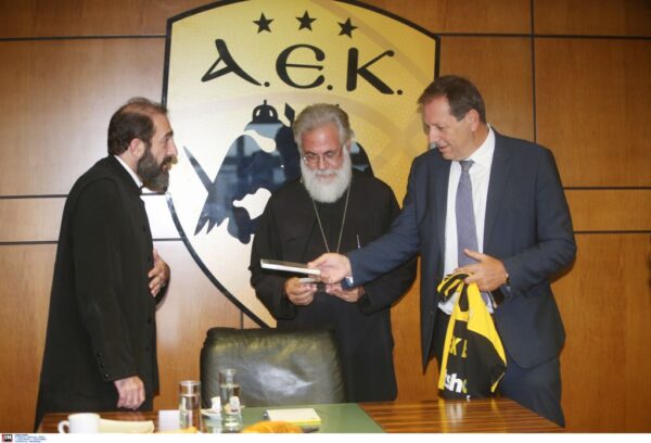 Στη συνάντηση με την οποία επικυρώθηκε η – από τη 5/11/2018 – συνεργασία της ΑΕΚ με την Εκκλησία της Ελλάδος, έδωσε το «παρών» και ο Αρχιμανδρίτης κ. Παντελεήμων (Παπασυννεφάκης), Διευθυντής του «Κέντρου» και εμπνευστής του εγχειρήματος, που στέφθηκε με απόλυτη επιτυχία κατά την περασμένη περίοδο. Οι τρεις άνδρες συζήτησαν τις νεότερες δράσεις ανάμεσα στις δύο πλευρές και οι οποίες θα αποκαλυφθούν το επόμενο διάστημα.