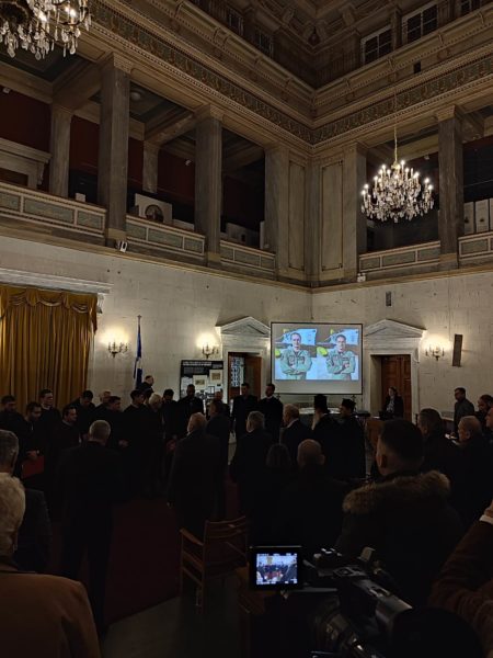 Πριν ξεκινήσει η εκδήλωση τηρήθηκε ενός λεπτού σιγή για τον υποσμηναγό Μιχαήλ Μάριο Τουρούτσικα και τον σμηναγό Στάθη Τσιτλακίδη.