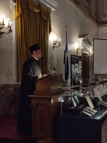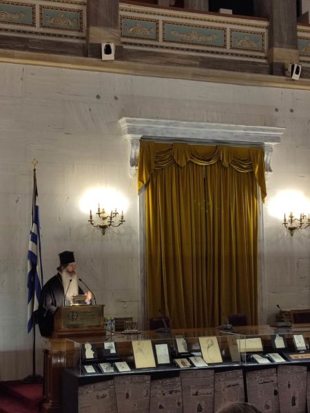Στον δικό του χαιρετισμό ο Αρχιμανδρίτης Ειρηναίος Νάκος ως εκπρόσωπος του Αρχιεπισκόπου Αθηνών και Πάσης Ελλάδος κ.κ. Ιερωνύμου, μετέφερε τις ευχές και τις ευλογίες του Μακαριωτάτου.