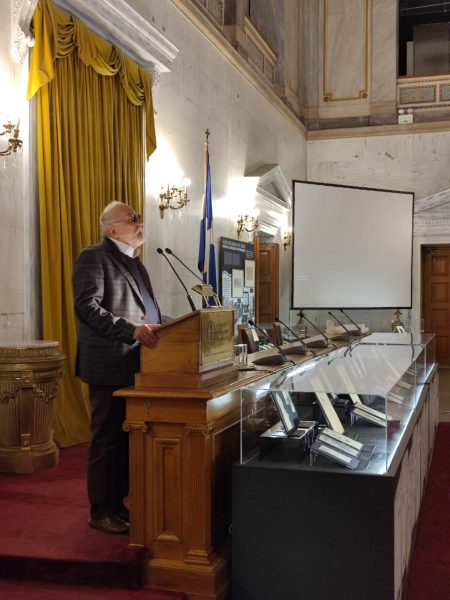 Η εκδήλωση, έλαβε χώρα στην ιστορική Αίθουσα της Παλαιάς Βουλής του Εθνικού Ιστορικού Μουσείου, με συντονιστή τον κ. Φώτη Μάνταλο, Διευθυντή της ΟΜΣΙΕ.