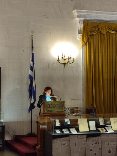 Χαιρετισμό απηύθυναν ο Γενικός Γραμματέας Απόδημου Ελληνισμού και Δημόσιας Διπλωματίας Ιωάννης Χρυσουλάκης ως εκπρόσωπος του πρωθυπουργού, ο βουλευτής του ΣΥΡΙΖΑ Παναγιώτης Κουρουμπλης, ο βουλευτής ΠΑΣΟΚ Κώστας Σκανδαλίδης, η βουλευτής ΚΚΕ Διαμάντω Μαρωνάκου καθώς και η Σταυρούλα-Βίλλυ Φωτοπούλου Διευθύντρια Νεότερης Πολιτιστικής Κληρονομιάς του ΥΠΠΟΑ, οι οποίοι έδωσαν το παρόν στην εκδήλωση.