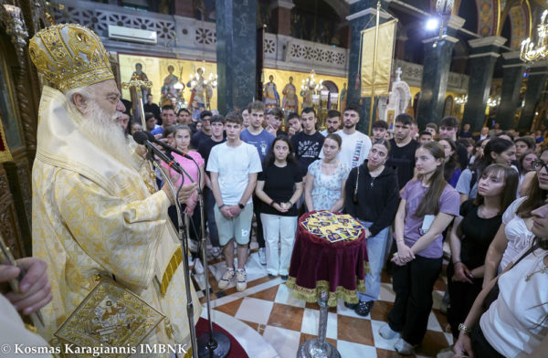 O Σεβασμιώτατος Μητροπολίτης Βεροίας, Ναούσης και Καμπανίας κ. Παντελεήμων τέλεσε εσπερινή Αρχιερατική Θεία Λειτουργία στον Ιερό Ναό του Oσίου Αντωνίου Πολιούχου Βεροίας για τους μαθητές και τις μαθήτριες που θα διαγωνισθούν τις επόμενες ημέρες στις Πανελλαδικές εξετάσεις. Κατόπιν πρωτοβουλίας του Ποιμενάρχου κ. Παντελεήμονος, την ίδια ώρα τελέστηκε ειδική ακολουθία για τους μαθητές και τις μαθήτριες στον Μητροπολιτικό Ναό της Ναούσης, της Αλεξανδρείας και στον Ιερό Ναό των Αγίων Νεομαρτύρων στη Χαλάστρα. Στο τέλος της Θείας Λειτουργίας, κατά την οποία εκκλησιάστηκε πλήθος μαθητών, μαθητριών και γονέων, ο Σεβασμιώτατος Μητροπολίτης κ. Παντελεήμων ανέγνωσε ειδική ευχή και ευχήθηκε πατρικά σε όλους.