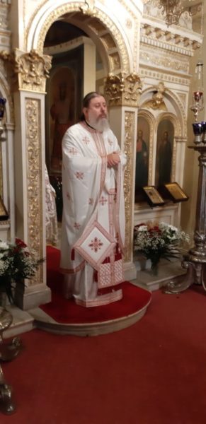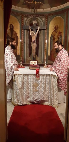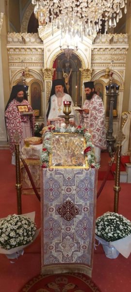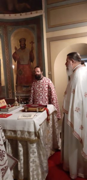 Την Θεία Λειτουργία τέλεσε ο Πανοσ. Αρχιμ. Θεολόγος Αλεξανδράκης, Αν. Διευθυντής του Ιδρύματος Ποιμαντικής Επιμορφώσεως, συλλειτουργούντος του Πανοσ. Αρχιμ. Μιχαήλ Σταθάκη και του Αιδεσ. Οικον. Ζήση Κτενίδη, συνεργατών του Ι.Π.Ε.