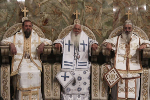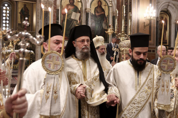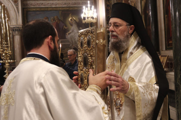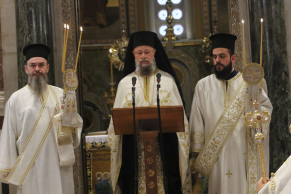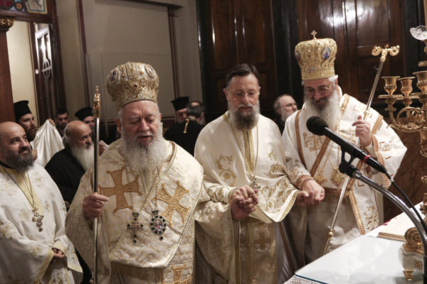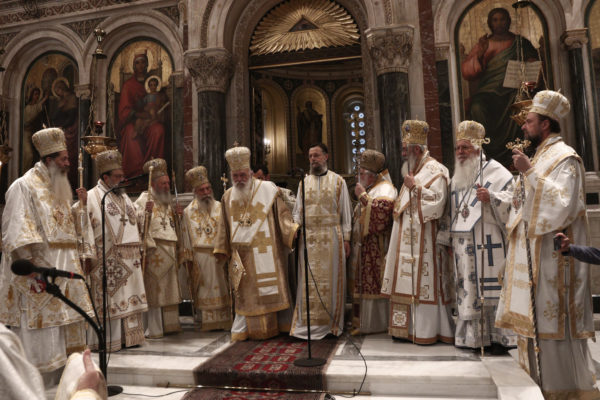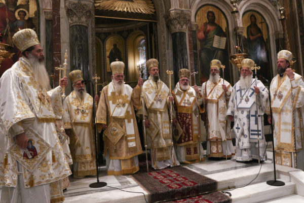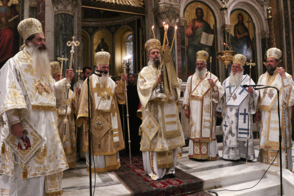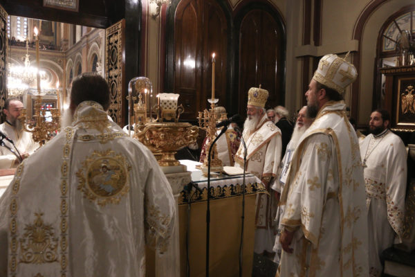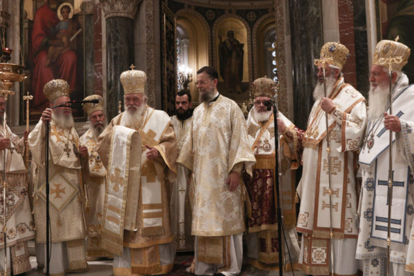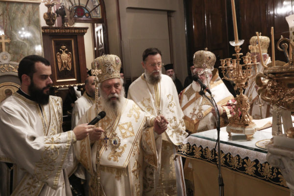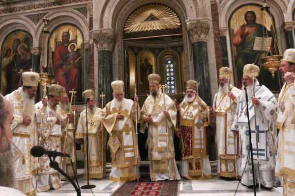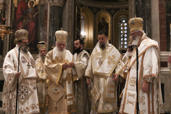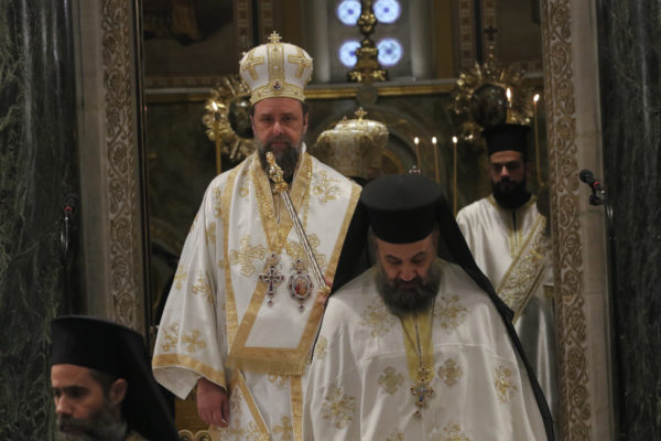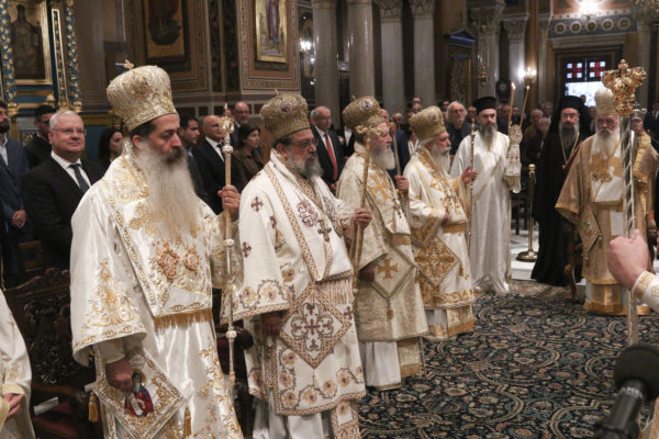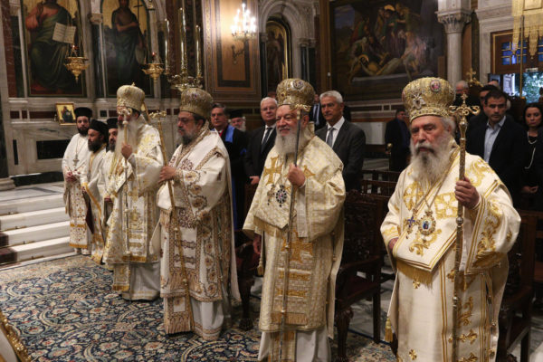 Στο Αρχιερατικό Συλλείτουργο, παρέστησαν συμπροσευχόμενοι οι Σεβασμιώτατοι Μητροπολίτες Κηφισίας κ. Κύριλλος, Γλυφάδας κ. Αντώνιος, Γόρτυνος κ. Νικηφόρος, Παραμυθίας κ. Σεραπίων, Φλωρίνης κ. Ειρηναίος και οι Θεοφιλέστατοι Επίσκοποι Ανδρούσης κ. Κωνστάντιος, Ταλαντίου κ. Επιφάνιος και Θεσπιών κ. Παύλος.