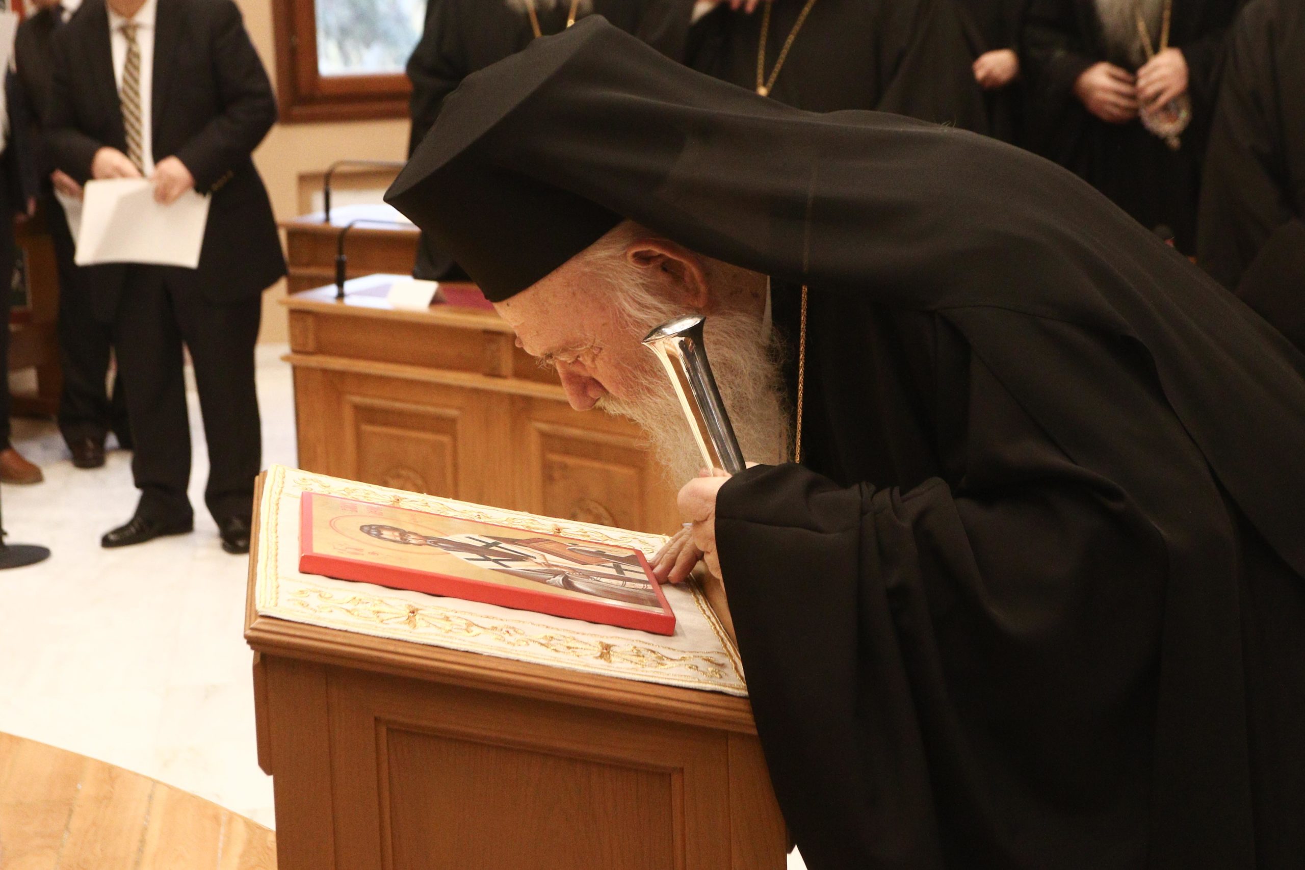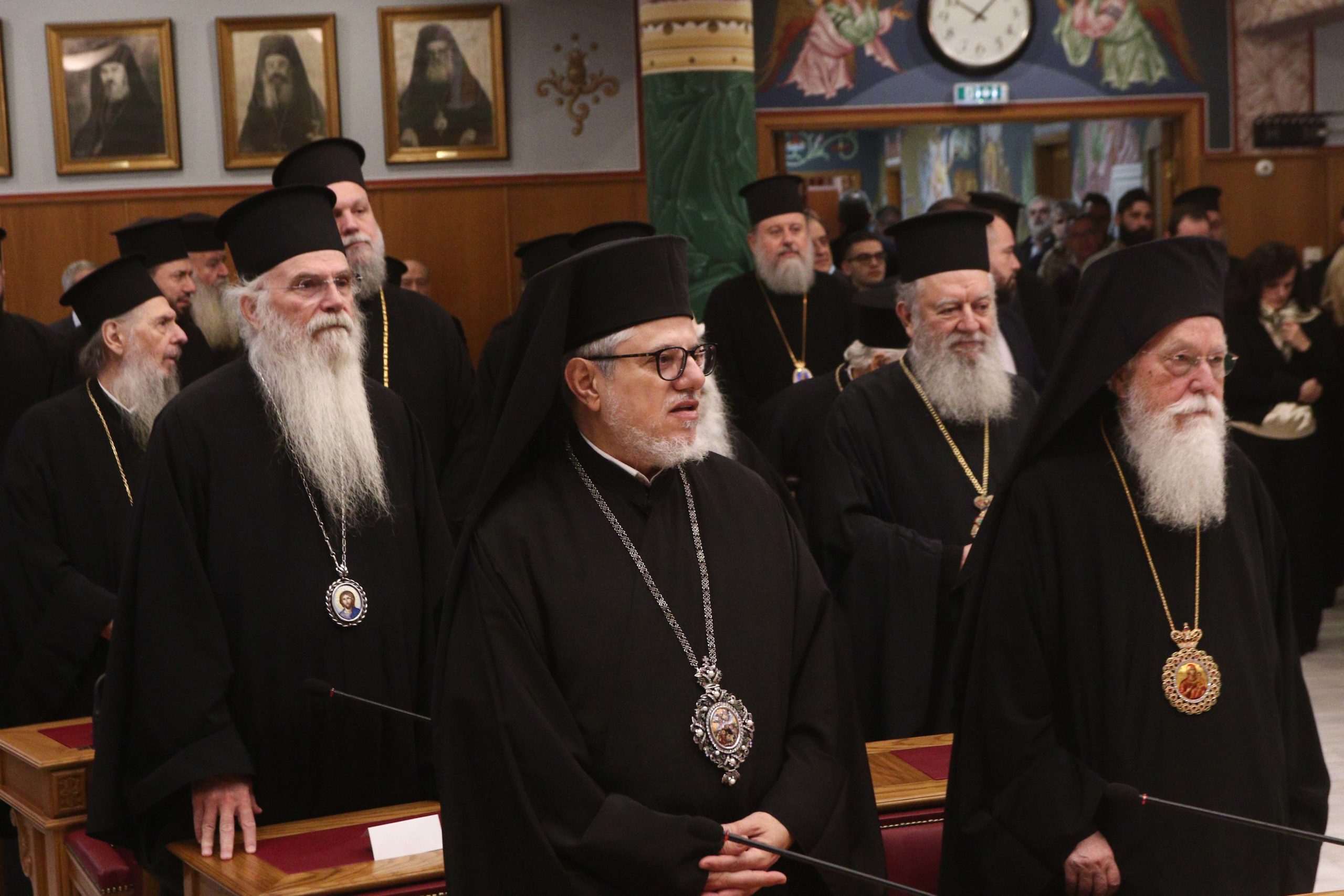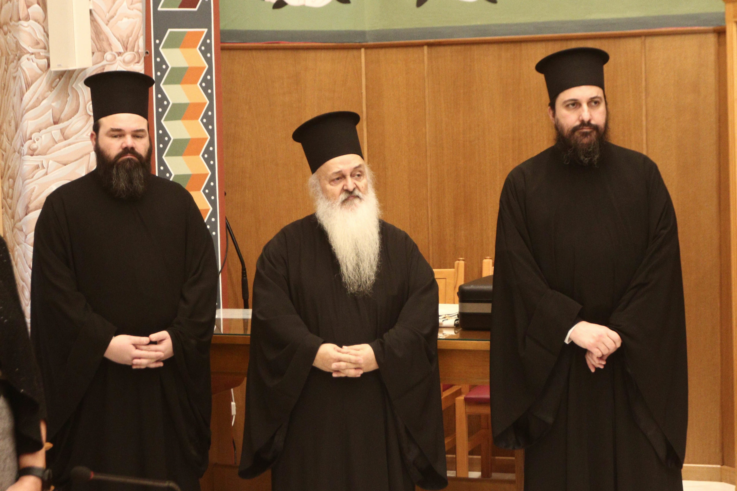 Παρευρέθησαν ο Εκπρόσωπος του Γραφείου του Οικουμενικού Πατριαρχείου στην Αθήνα Σεβασμιώτατος Μητροπολίτης Λαοδικείας κ. Θεοδώρητος, ο Εκπρόσωπος του Πατριαρχείου Αλεξανδρείας στην Αθήνα Σεβασμιώτατος Μητροπολίτης Γουινέας κ. Γεώργιος, ο Έξαρχος του Παναγίου Τάφου στην Αθήνα Πανοσιολογιώτατος Αρχιμανδρίτης κ. Ιερώνυμος, ο Επίτροπος της Ιεράς Μονής Σινά στην Αθήνα Πανοσιολογιώτατος Αρχιμανδρίτης κ. Αγαθάγγελος, οι Σεβασμιώτατοι Συνοδικοί Μητροπολίτες Χαλκίδος κ. Χρυσόστομος, Νέας Σμύρνης κ. Συμεών και Μεσογαίας και Λαυρεωτικής κ. Νικόλαος, οι Σεβασμιώτατοι Μητροπολίτες Νικαίας κ. Αλέξιος, Πειραιώς κ. Σεραφείμ, Κηφισίας, Αμαρουσίου, Ωρωπού και Μαραθώνος κ. Κύριλλος, Νέας Ιωνίας, Φιλαδελφείας, Ηρακλείου και Χαλκηδόνος κ. Γαβριήλ, Γλυφάδας, Ελληνικού, Βούλας, Βουλιαγμένης και Βάρης κ. Αντώνιος, Μεγάρων και Σαλαμίνος κ. Κωνσταντίνος, οι Πανιερώτατοι Μητροπολίτες Θερμοπυλών κ. Ιωάννης και Θαυμακού κ. Ιάκωβος, ο Θεοφιλέστατος Αρχιγραμματεύς της Ιεράς Συνόδου της Εκκλησίας της Ελλάδος Επίσκοπος Σκιάθου κ. Ιωάννης, ο Θεοφιλέστατος Πρωτοσύγκελλος της Ιεράς Αρχιεπισκοπής Αθηνών Επίσκοπος Χριστουπόλεως κ. Βαρνάβας, οι Θεοφιλέστατοι Επίσκοποι Χριστιανουπόλεως κ. Προκόπιος, Φωτικής κ. Νεκτάριος, Καρυουπόλεως κ. Νεκτάριος, Επιδαύρου κ. Νικόδημος και Ταλαντίου κ. Θεολόγος, ο Γενικός Αρχιερατικός Επίτροπος της Ιεράς Αρχιεπισκοπής Αθηνών π. Εμμανουήλ Παπαμικρούλης, ο Κοσμήτορας της Θεολογικής Σχολής του Πανεπιστημίου Αθηνών κ. Εμμανουήλ Καραγεωργούδης, ο Πρόεδρος του Τμήματος Θεολογίας της Θεολογικής Σχολής του ΕΚΠΑ κ. Ιωάννης Παναγιωτόπουλος και ο Πρόεδρος του Ακαδημαϊκού Συμβουλίου της Ανωτάτης Εκκλησιαστικής Ακαδημίας Αθηνών κ. Αθανάσιος Καψάλης, Καθηγητές της Θεολογικής Σχολής Αθηνών, Ακαδημαϊκοί, Διευθυντές των Υπηρεσιών και των Οργανισμών της Ιεράς Συνόδου της Εκκλησίας της Ελλάδος, οι Γραμματείς των Συνοδικών Επιτροπών, Κληρικοί και λαϊκοί Υπάλληλοι των Διοικητικών Υπηρεσιών της Ιεράς Συνόδου.