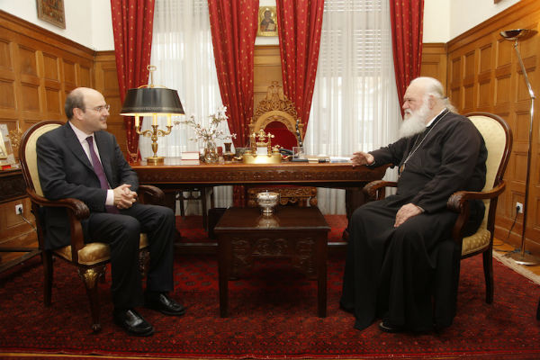 Αρχιεπίσκοπος Ιερώνυμος και Κωστής Χατζηδάκης σε παλαιότερη συνάντησή τους στην Αρχιεπισκοπή (Φωτ αρχείου: Χρήστος Μπόνης)