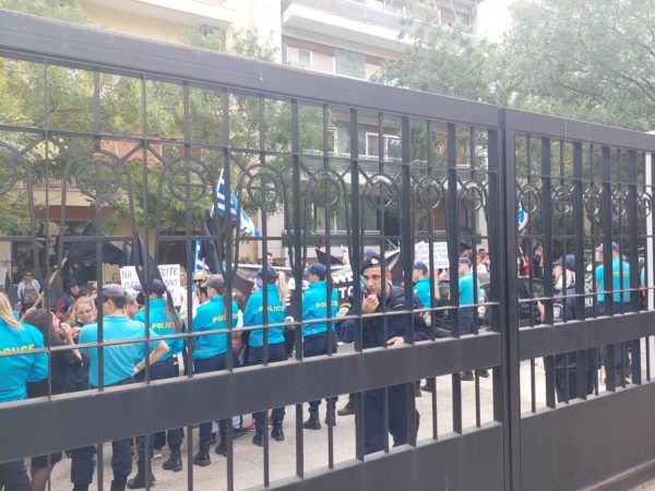 Την ομάδα περιφρούρησης της Αστυνομίας που βρισκόταν από το πρωί ήρθε να ενισχύσει λίγο μετά τις 12 το μεσημέρι διμοιρία της Υποδιεύθυνσης Μέτρων Τάξης (ΥΜΕΤ) καθώς έξω από τις εγκαταστάσεις της Συνόδου συγκεντρώθηκε μικρή ομάδα υγειονομικών που βρίσκονται σε αναστολή εργασίας επειδή δεν εμβολιάζονται.