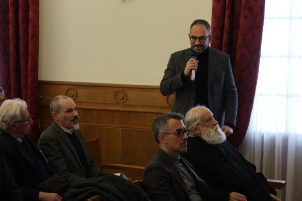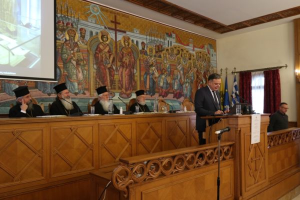 Μετά την ανάγνωση του Μηνύματος του Μακαριωτάτου Αρχιεπισκόπου κ.κ. Ιερωνύμου Β‘ και το Χαιρετισμό της Υπουργού Πολιτισμού κας Μενδώνη από τον Γ. Γραμματέα του Υπουργείου κ. Γ. Γεωργίου Διδασκάλου, ο Πρόεδρος της Ειδικής Συνοδικής Επιτροπής επί των Χριστιανικών Μνημείων Σεβασμιώτατος Μητροπολίτης Σύρου κ. Δωρόθεος Β’ καλωσόρισε τους Συνέδρους, μεταξύ των οποίων ήταν τα Μέλη της Επιτροπής και οι Σεβασμιώτατοι Μητροπολίτες Θηβών κ. Γεώργιος, Κεφαλληνίας κ. Δημήτριος, Καρπενησίου κ. Γεώργιος και ο Θεοφιλέστατος Επίσκοπος Θεσπιών κ. Παύλος.